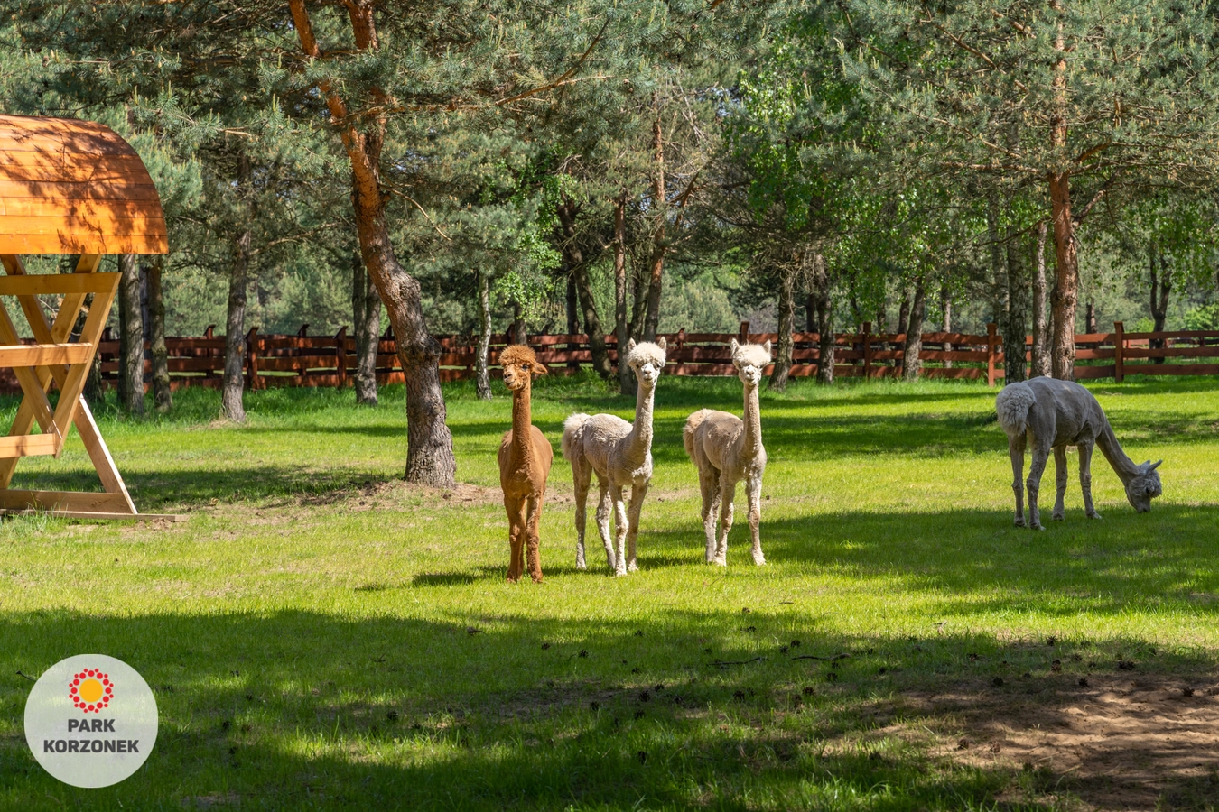 Alpaki – krewniacy lam – to najbardziej puchaci mieszkańcy Parku Korzonek. Ich wełna to prawdziwy skarb! Jest delikatniejsza, lżejsza i cieplejsza od owczej, a ponadto hipoalergiczna. Alpaki mają łagodne i otwarte usposobienie. Dzięki temu istnieje alpakoterapia, czyli wspomożenie procesów terapii psychologicznej i wychowania.