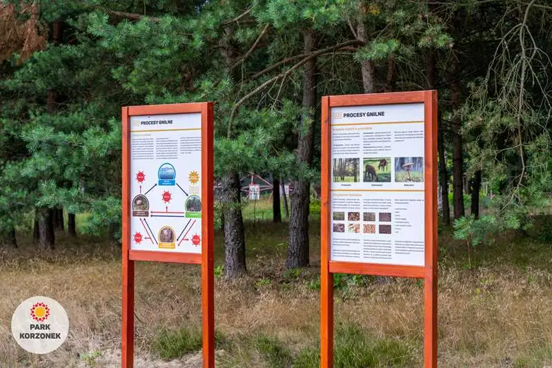 Na terenie naszego Parku znajdują się tablice edukacyjne, których zadaniem jest przybliżenie tematów ekologicznych. Teksty są skierowane do najmłodszych, ale również starsze osoby mogą dowiedzieć się z nich czegoś ciekawego.