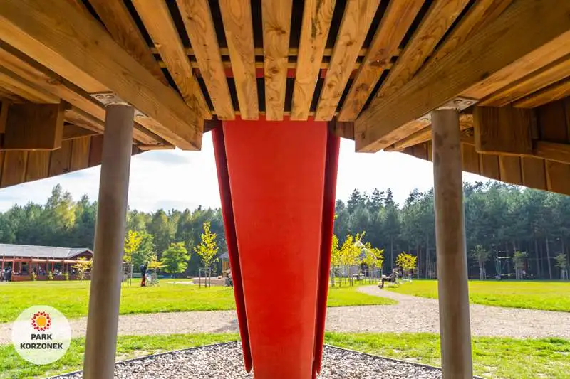 Obok alpak, kóz, pszczół, kur i danieli w Parku Korzonek mamy też gada. Tylko jednego, ale to ogromny jaszczur! Ma ponad 20 metrów długości, ale na szczęście jest przyjazny – bo drewniany! To absolutnie wyjątkowa konstrukcja do aktywnych zabaw. Można wejść do środka, wspinać się po łapach i zjechać po języku lub ogonie.