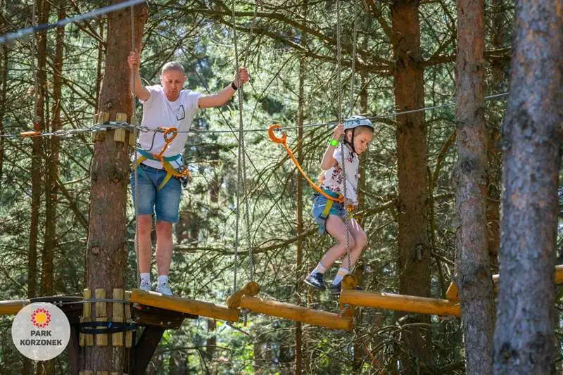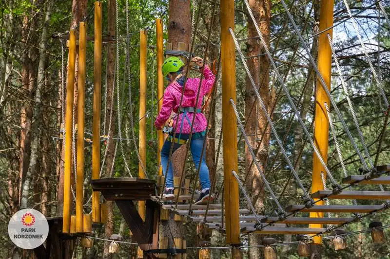 To miejsce świetnej i aktywnej zabawy – ale nie tylko. Na poszczególnych konstrukcjach można ocenić swoje możliwości przy znanym ryzyku. To dla dzieci nauka oceny ryzyka w bezpiecznym miejscu. Na co dzień umiejętność oceny ryzyka może uratować młodszych i starszych przed niejednym nabitym guzem! Dla młodszych mamy też niższy parczek linowy, ok. pół metra nad ziemią.