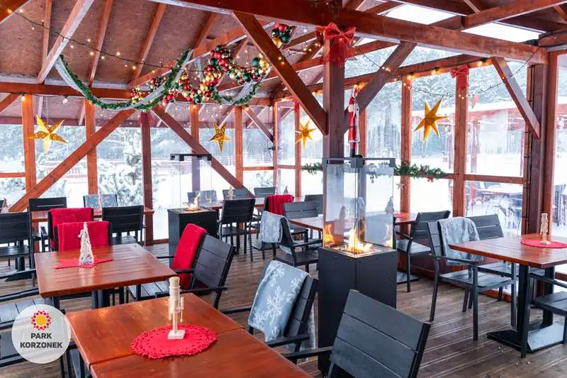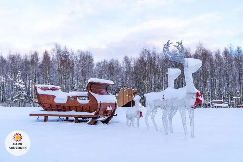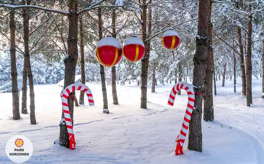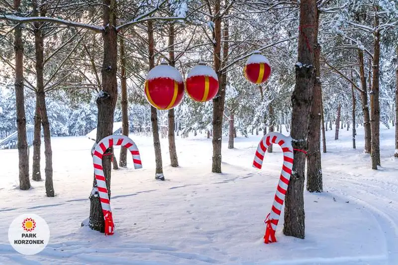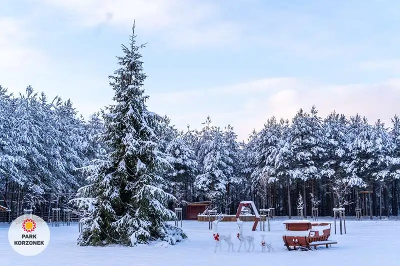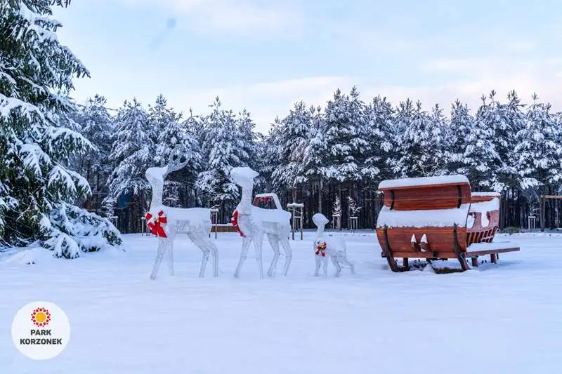 W okresie zimowym w naszym parku przygotowujemy specjalny świąteczny wystrój. Lampki, bombki, ogromna choinka, sanie Mikołaja, wszystkie te atrakcje są dostępne dla naszych gości.
