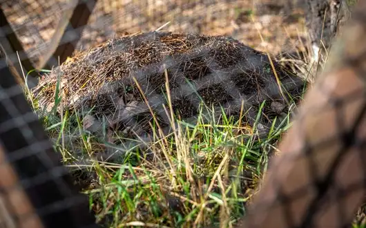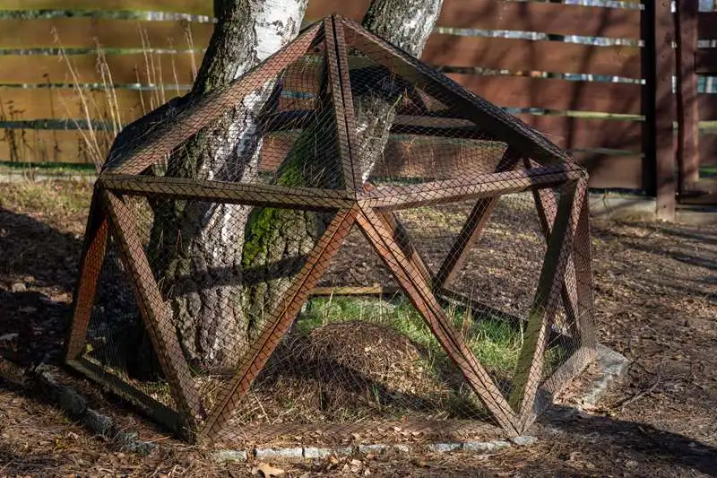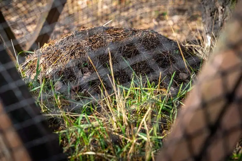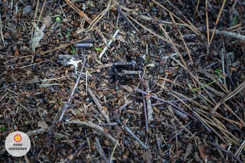 Mrówki rudnice to najmniejsi rezydenci Parku Korzonek. Ich mrowisko jest osłonięte siatką, umocowaną na drewnianej kopule. W ogrodach często traktujemy te owady jak szkodniki. Tymczasem ich społeczności są kluczowe dla leśnych ekosystemów, dlatego podlegają prawnej ochronie w Polsce. Warto uczyć się o tajnikach ich mrówczej pracy.