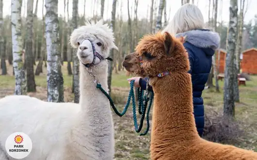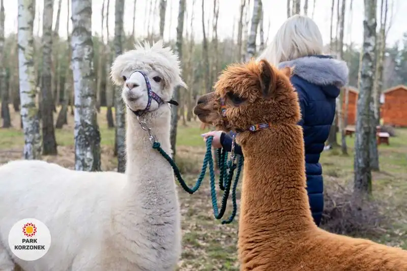 Spacer z alpakami lub kozami : - koszt 50 zł za 30 min, - grupa max 5 osób.